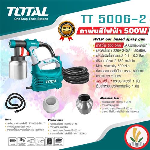 กาพ่นสีไฟฟ้า TOTAL รุ่น TT5006-2 500 วัตต์ ระบบ HVLP ⭐️ ส่งฟรี ⭐️ เครื่องพ่นสีไฟฟ้า หัวฉีดปรับได้ 3 แบบ