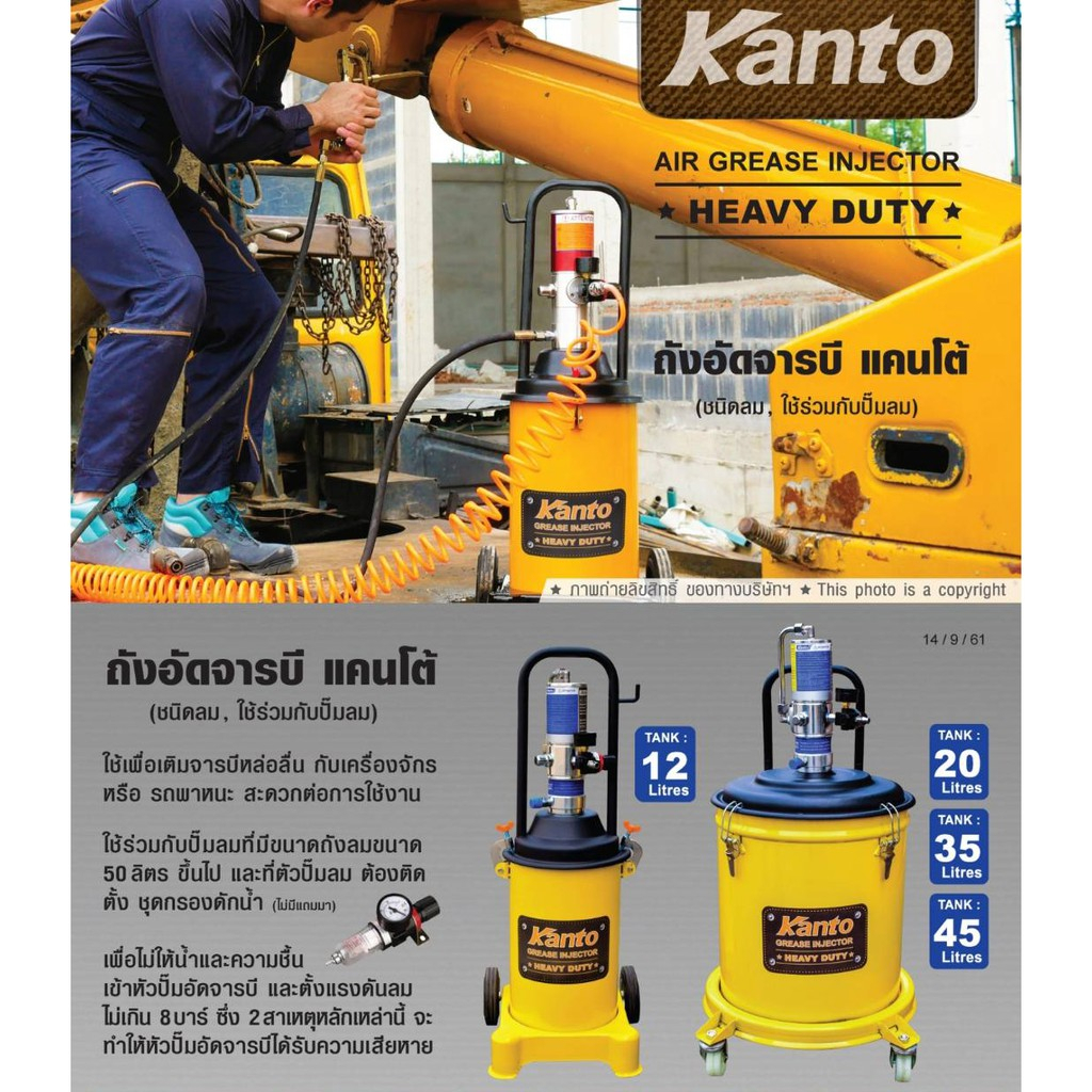 ถังอัดจารบี KANTO ชนิดลม 12ลิตร KT-AIRG-12 ใช้ร่วมกับปั๊มลม ถังอัดจารบีใช้กับปั๊มลม ถังอัดจารบีใช้ลม ถังอัดจารบีแบบอัดลม
