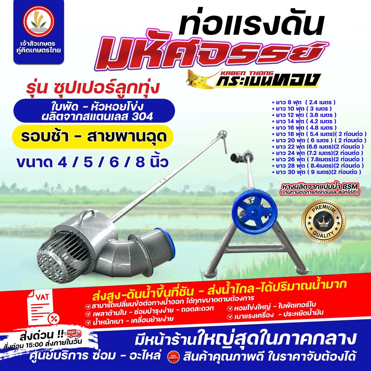 ⚙️ ท่อแรงดัน มหัศจรรย์ ตรากระเบนทอง รุ่น ซุปเปอร์ลูกทุ่ง ( รอบช้า - สายพานฉุด )