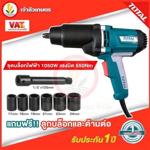 TOTAL บล็อกไฟฟ้า บล็อคไฟฟ้า 1050W รุ่น TIW-10101 1/2 นิ้ว (4หุน) แรงบิด 550Nm แถมลูกบล็อก และ ข้อต่อ กล่องแข็ง