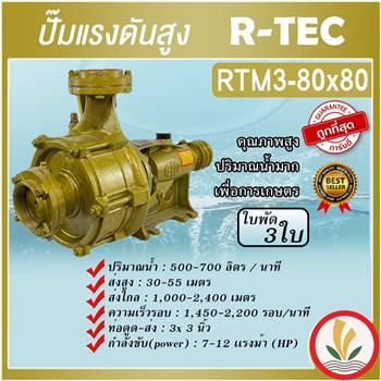 ปั๊มแรงดันสูง 3 ใบพัด 3"x3" ยี่ห้อ R-TEC ( มังกรทอง ) รุ่น RTM3-80X80 แรงดันสูง ใช้อัดสปริงเกอร์ สายน้ำหยด ส่งน้ำระยะไกล