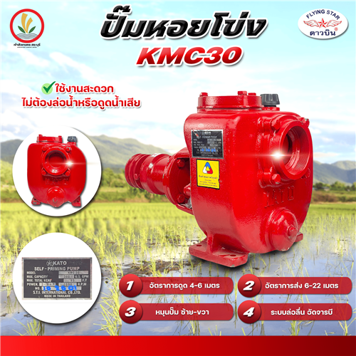 KATO ดาวบิน ปั๊มติดรถน้ำ ชนิดไม่ล่อนํ้า คาโต้ 3 นิ้ว รุ่น KMC 30 (หมุนซ้าย หมุนขวา) เน้นใช้งานสะดวกไม่ต้องล่อนํ้าหรือดูดนํ้า