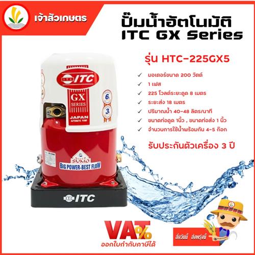 ITC GX Series รุ่น HTC-225GX5 ปั๊มน้ำอัตโนมัติ ถังกลม 200W รับประกันมอเตอร์ 10 ปี และตัวเครื่อง 3 ปี