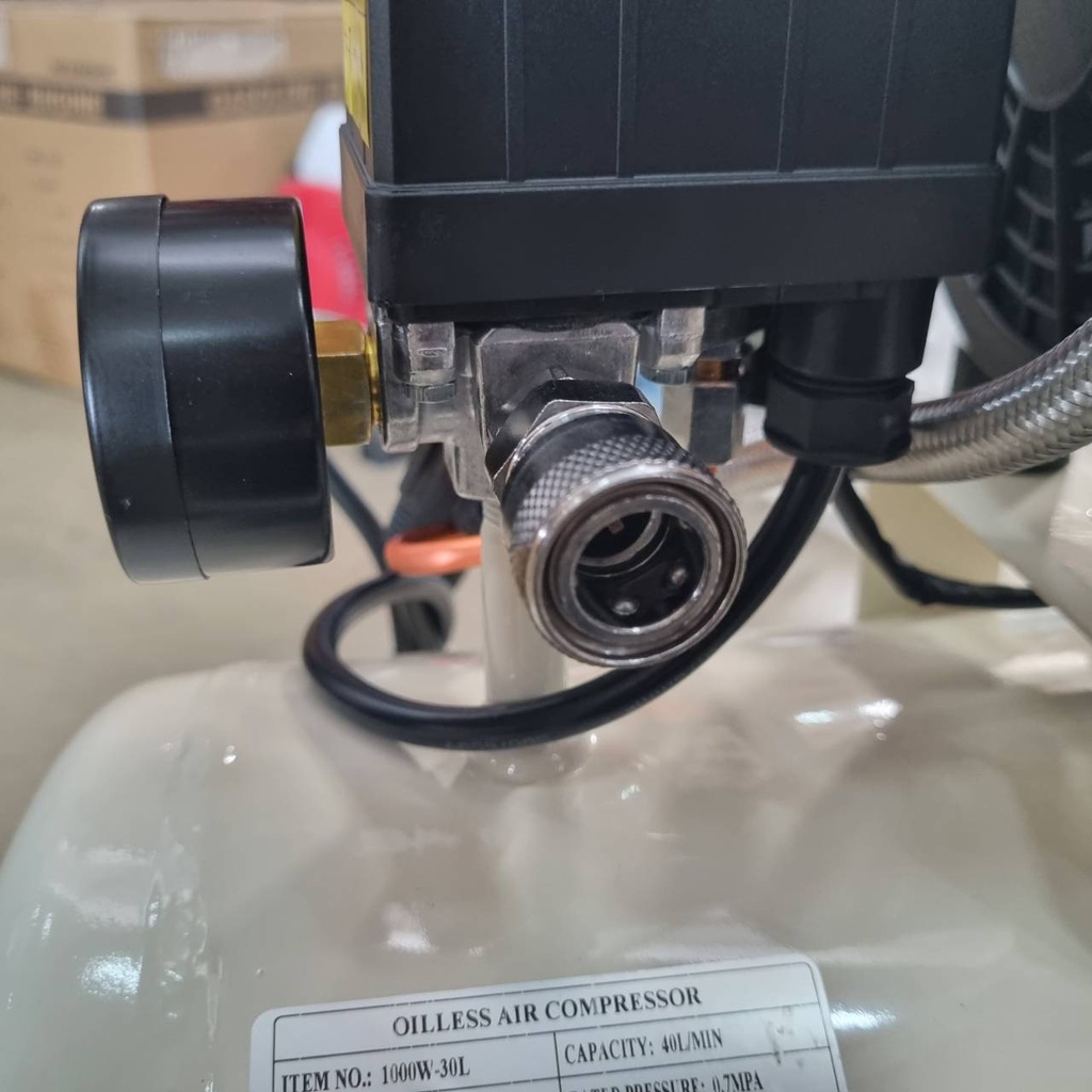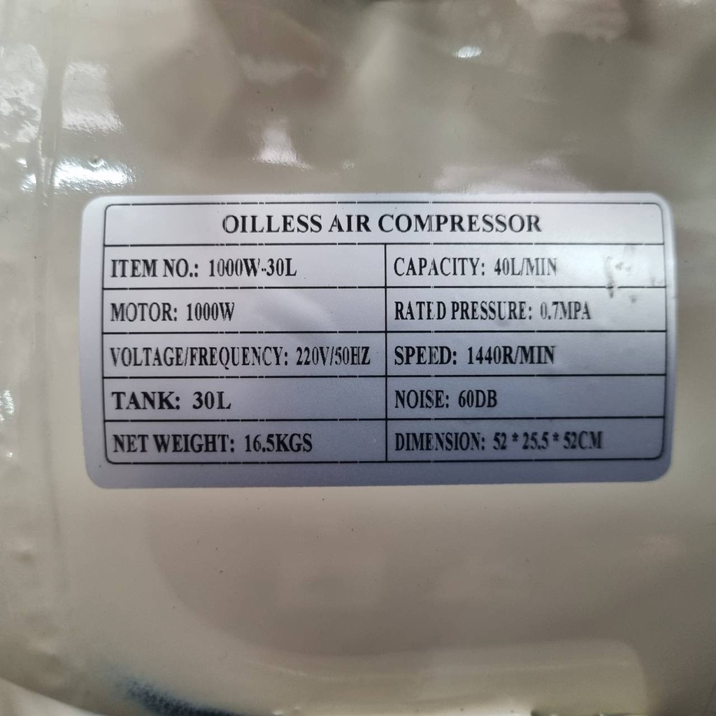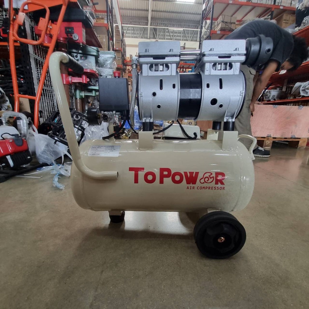 ปั๊มลมออยล์ฟรี ปั๊มลม Topower Oilfree 30 ลิตร 220V 8 บาร์ มอเตอร์ 1000W ปั๊มลมเสียงเงียบ