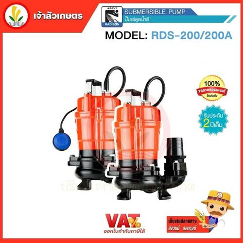 Radison รุ่น RDS-200 RDS-200A ปั๊มแช่ ปั๊มไดโว่ ดูดโคลน 400w 1/2HP ขนาดท่อส่ง 2 นิ้ว