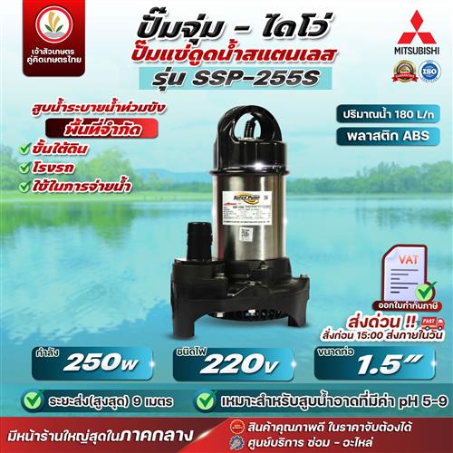 ปั๊มแช่ ปั๊มจุ่ม ไดโว่ มิตซู Mitsubishi รุ่น SSP-255S, SSP-255SA (มีลูกลอย) 250W ท่อ 1.5นิ้ว 220V รับประกัน1ปี
