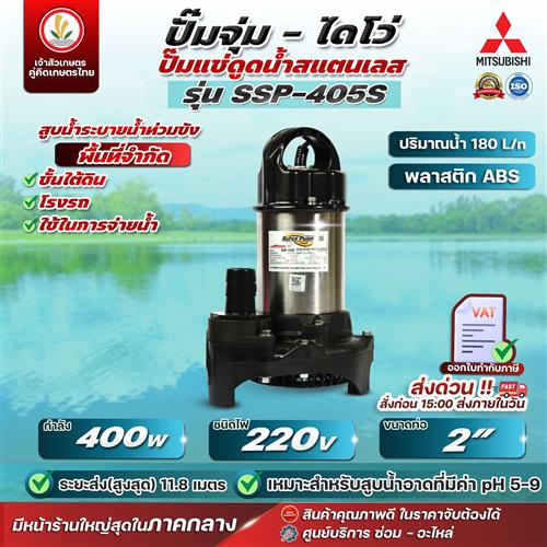 ปั๊มแช่ MITSUBISHI รุ่น SSP-405S, SSP-405SA (มีลูกลอย) 2 นิ้ว 400W 220V ไดโว่ ปั๊มจุ่ม ปั๊มดูดน้ำ มิตซู รับประกัน1ปี