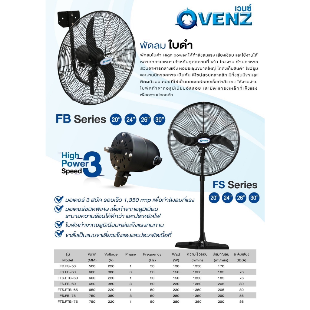 พัดลมติดผนัง ยี่ห้อ VENZ พัดลม 20 นิ้ว พัดลมยึดผนัง พัดลมแขวนผนัง พัดลมแขวนผนังใบดำ