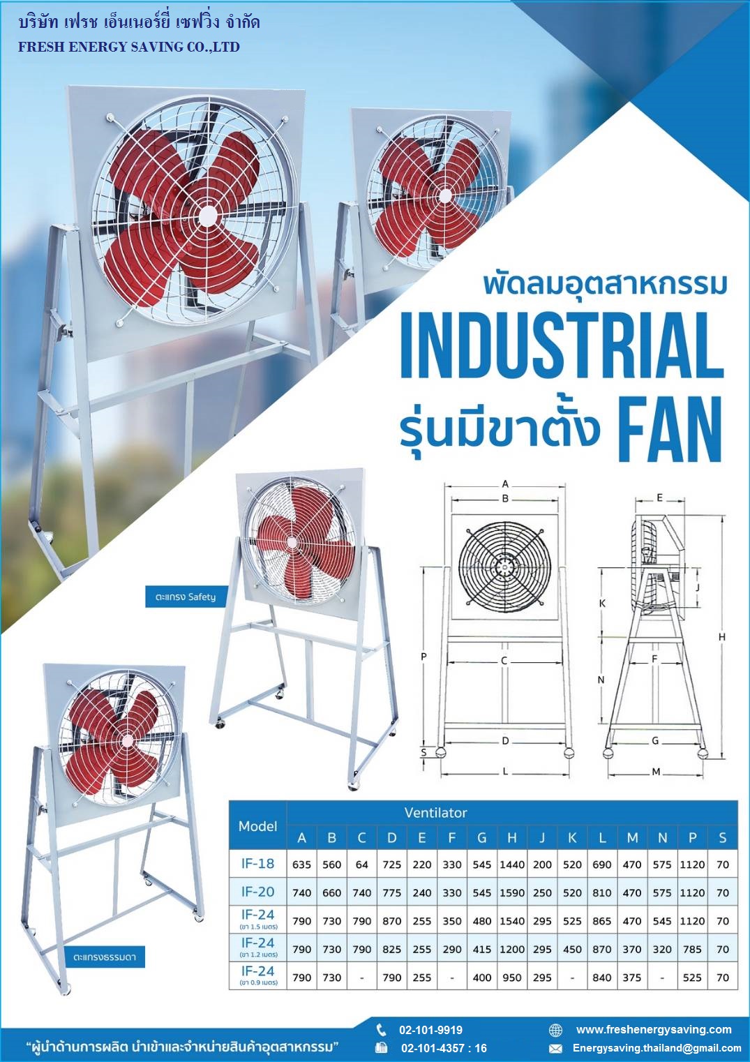 เหมาะสำหรับโรงงานอุตสาหกรรมและพื้นที่ที่ต้องการอากาศถ่ายเท ให้ปริมาณลมสูงกว่า 3 เท่า และใช้ระบบความปลอดภัย Thermal Fuse ตัดการทำงานอัตโนมัติเมื่อใช้งานเกินกำลัง แข็งแรง ทนทานได้มาตรฐาน