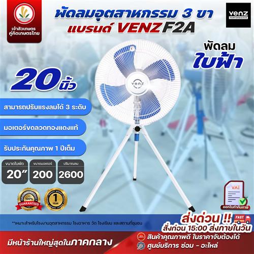 พัดลม 24 นิ้ว 3 ขา venz รุ่น F1A พัดลมอุตสาหกรรม พัดลมใบฟ้า รับประกัน 1 ปี ปรับแรงลมได้ 3 ระดับ