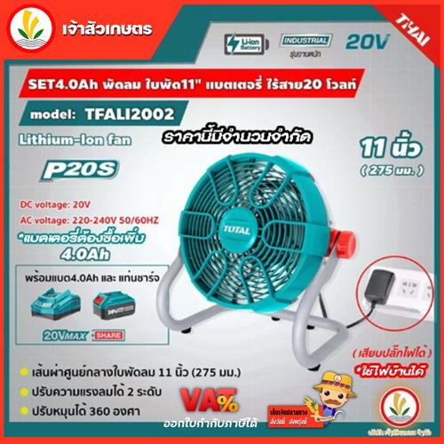 Total รุ่น TFALI2002 พัดลม 11 นิ้ว ไร้สาย 20 โวลท์ ใช้แบตเตอรี่ได้ ใช้ไฟบ้านได้ (Li-on Fan)