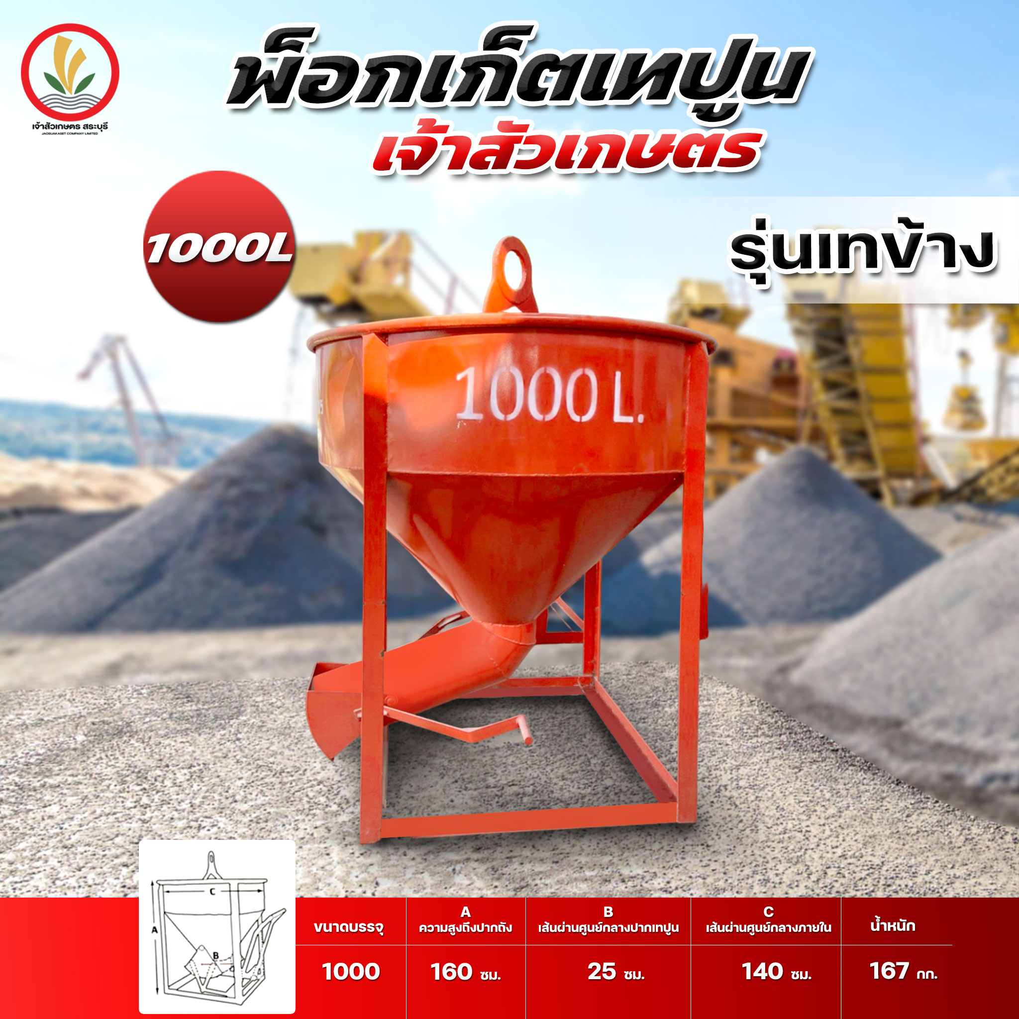 พ็อกเก็ตเทปูน พ็อคเก็ตปูน 1000 ลิตร เทตรง และ เทข้าง ถูกที่สุดในท้องตลาด ราคาโรงงาน