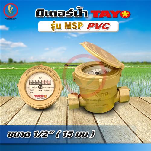 มิเตอร์น้ำ มาตรวัดน้ำ Tayo 1/2 นิ้ว 15 mm (PVC) รุ่น MSP (มีใบรับรองช่างตวงวัด) ผลิตมาจากพลาสติก ABS ทนทาน น้ำหนักเบา