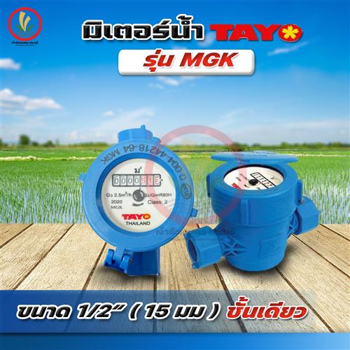 มิเตอร์น้ำ มาตรวัดน้ำ Tayo 1/2 นิ้ว 15 mm ชั้นเดียว รุ่น MGK (มีใบรับรองช่างตวงวัด) ผลิตมาจากพลาสติก ABS ทนทานน้ำหนักเบา