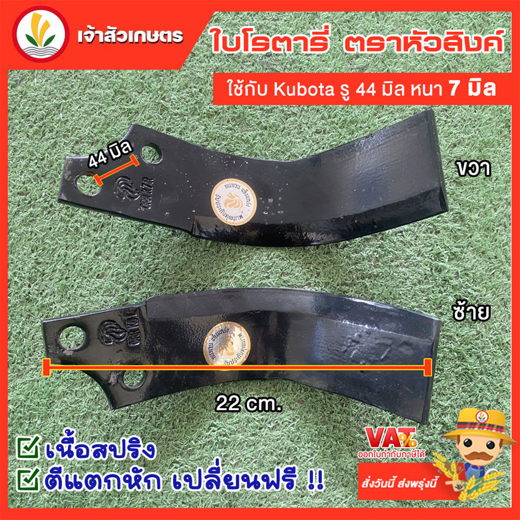 (ราคาต่อ 1 ใบ) ใบโรตารี่ ใบจอบหมุน ใบตีดิน ตราหัวสิงค์(CRR) คูโบต้า ยันมาร์ มีหนา6มิลและหนา7มิล R/L ตีแตกหักเปลี่ยนฟรี ** สั่งหลายใบ ทักแชทได้เลยนะคะ -------------------------------------------------------- มีจำหน่ายทั้ง แบบใบเดียว และ เป็นกล่อง (ราคาต่อกล่อง) จำนวน 20 ใบ/กล่อง --------------------------------------------------------