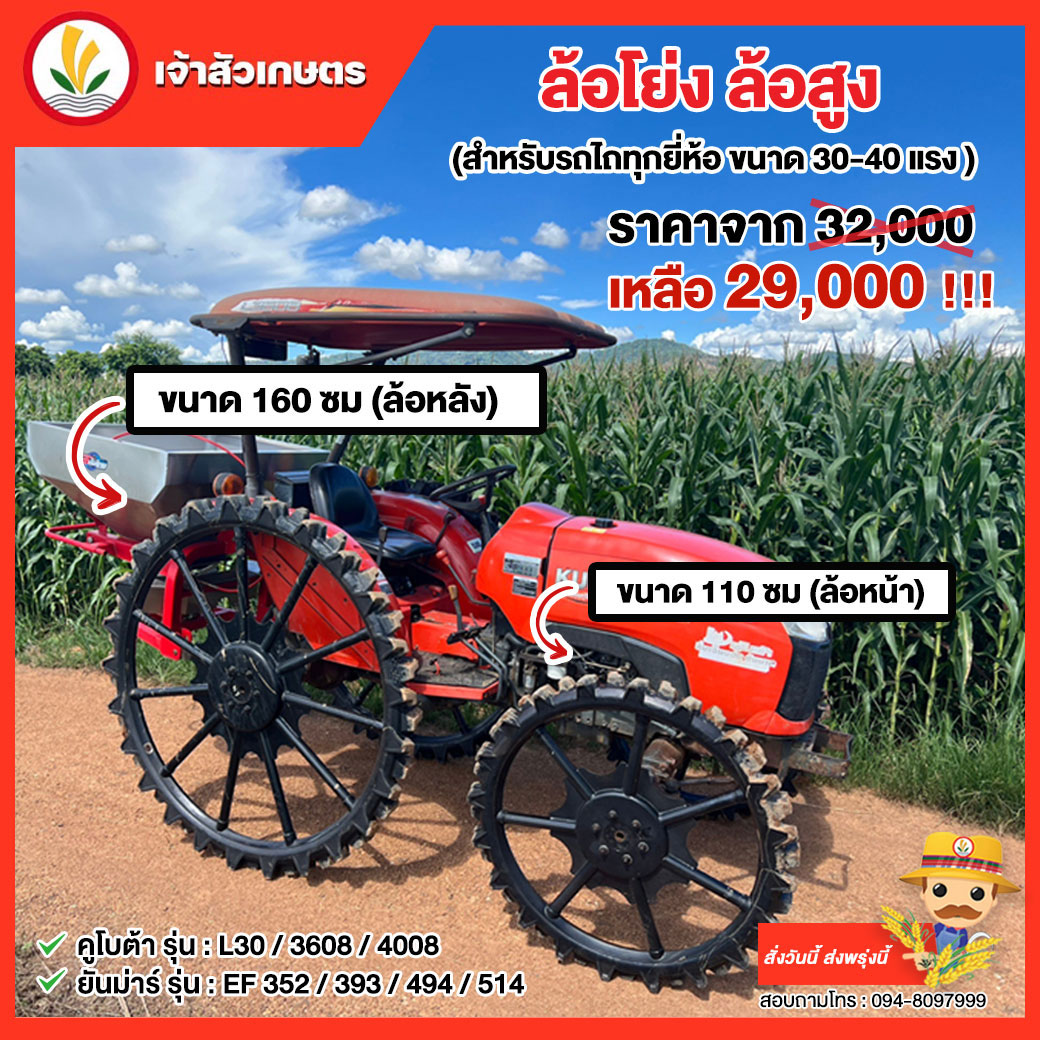 * ขนาด 110 ซม (ล้อหน้า) / 160 ซม (ล้อหลัง) (สำหรับรถไถทุกยี่ห้อ ขนาด 30-40 แรง )