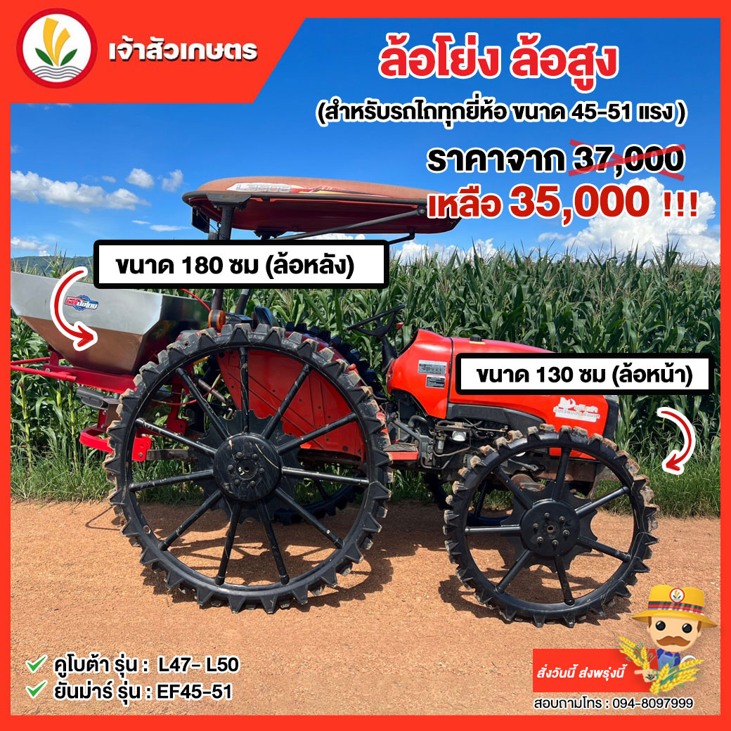 ขนาด 130 ซม (ล้อหน้า) / 180ซม (ล้อหลัง) (สำหรับรถไถทุกยี่ห้อ ขนาด 45-51แรง )