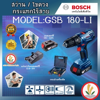 รายละเอียดสินค้า Bosch สว่านกระแทกไร้สาย บ๊อช รุ่น GSB 180-LI (18V.) - คุณภาพดี - ทนทาน แข็งแรง - สะดวก ใช้งานง่าย กำลังไฟ 18 V แรงบิด 21/54 Nm ความเร็วรอบ 0-450 / 0-1700 rpm สามารถเจาะ ไม้ / เหล็ก 35 / 10 mm. หัวสว่าน ระบบ AUTO LOCK มีไฟ LED ครัช 20+1 หัวจับดอก 13 mm. น้ำหนัก 6 Kg