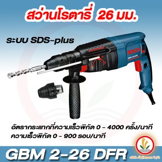 สรุปข้อมูลจำเพาะ - กำลังไฟเข้าพิกัด 800 W - แรงกระแทก 2,7 J - อัตรากระแทกที่ความเร็วพิกัด 0 – 4000 ครั้ง/นาที - ความเร็วพิกัด 0 – 900 รอบ/นาที - น้ำหนัก 2.9 กก. - ความยาว 407 มม. - ความกว้าง 83 มม. - ความสูง 210 มม. - ตัวจับดอกไขควง SDS-plus ระยะการเจาะ - เส้นผ่าศูนย์กลางของการเจาะคอนกรีต (ดอกสว่านกระแทก) 4 – 26 มม. - ช่วงการใช้งานที่ให้ประสิทธิภาพสูงสุดสำหรับคอนกรีต (ดอกสว่านกระแทก) 8 – 16 มม. - เส้นผ่าศูนย์กลางสูงสุดของการเจาะอิฐด้วยดอกเจาะคว้าน 68 มม. - เส้นผ่าศูนย์กลางสูงสุดของการเจาะเหล็กกล้า 13 มม. - เส้นผ่าศูนย์กลางสูงสุดของการเจาะไม้ 30 มม. การเจาะกระแทกในคอนกรีต - ค่าการสั่นสะเทือน ah 16.5 ม./วินาที² - ความไม่แน่นอน K 1.5 ม./วินาที² การสกัด - ค่าการสั่นสะเทือน ah 10.5 ม./วินาที² - ความไม่แน่นอน K 1.5 ม./วินาที² Bosch Heavy Duty- นิยามใหม่แห่งพลัง *ประสิทธิภาพ และความแข็งแกร่ง! - การส่งกำลังมีประสิทธิภาพสูง การส่งกำลังมีประสิทธิภาพสูง สำหรับสว่านเจาะกระแทกขนาดเล็ก - ปกป้องผู้ใช้และเครื่องจักรในกรณีที่เกิดการติดขัดหรือโอเวอร์โหลด ปกป้องผู้ใช้และเครื่องจักรในกรณีที่เกิดการติดขัดหรือโอเวอร์โหลด - ไม่เกิดกรณีเครื่องมือติดขัดเนื่องจากระบบจะปลดการจับของคลัตช์และลดแรงบิดลง - ควบคุมความเร็วในการหมุนได้อย่างเที่ยงตรงและง่ายดาย - ควบคุมความเร็วในการหมุนได้อย่างเที่ยงตรงและง่ายดายด้วยความเร็วแบบปรับได้ - หมุนได้ทั้งซ้าย/ขวา หมุนได้ทั้งซ้าย/ขวาสำหรับการขันและคลายสกรู
