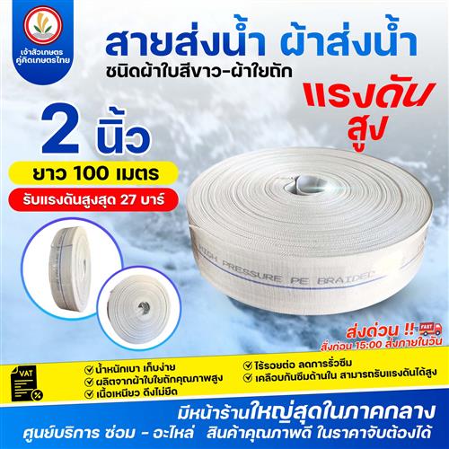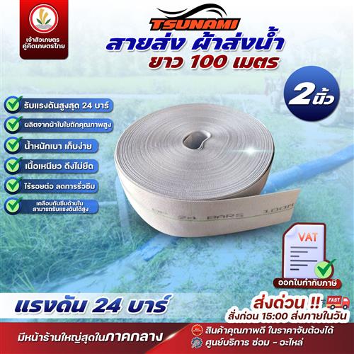 สายส่งน้ำ สีขาว PRS (24 บาร์) แบรนด์ TSUNAMI ขนาด 2นิ้ว100เมตร, 2.5นิ้ว100เมตร, 3นิ้ว100เมตร, 4นิ้ว100เมตร, 6นิ้ว100เมตร, 8นิ้ว50เมตร ทนแดด ทนฝน ทนแรงดันสูง