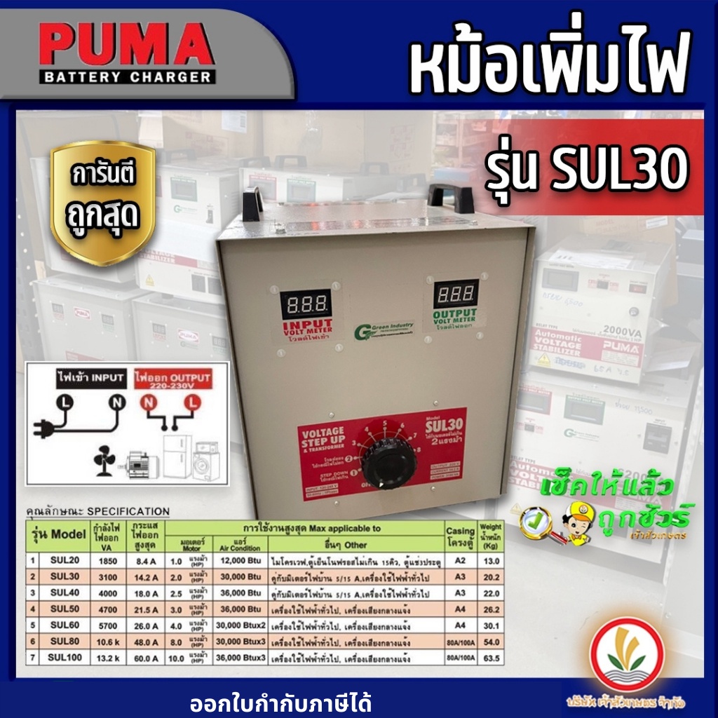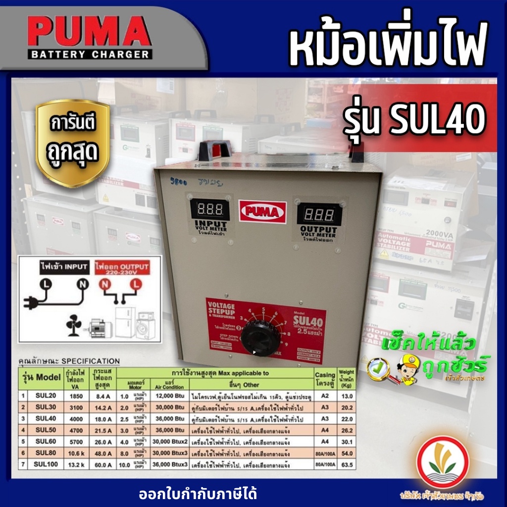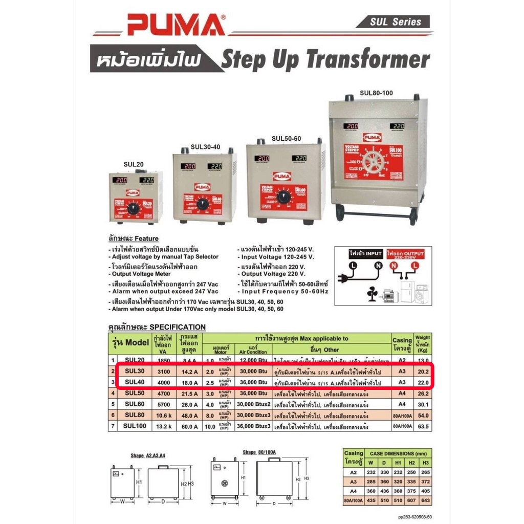 หม้อเพิ่มไฟ PUMA รุ่น SUL30 เลขบาร์ 004950 (TMUR) หม้อเพิ่มไฟ PUMA รุ่น SUL40 เลขบาร์ MM0088 (TURK)