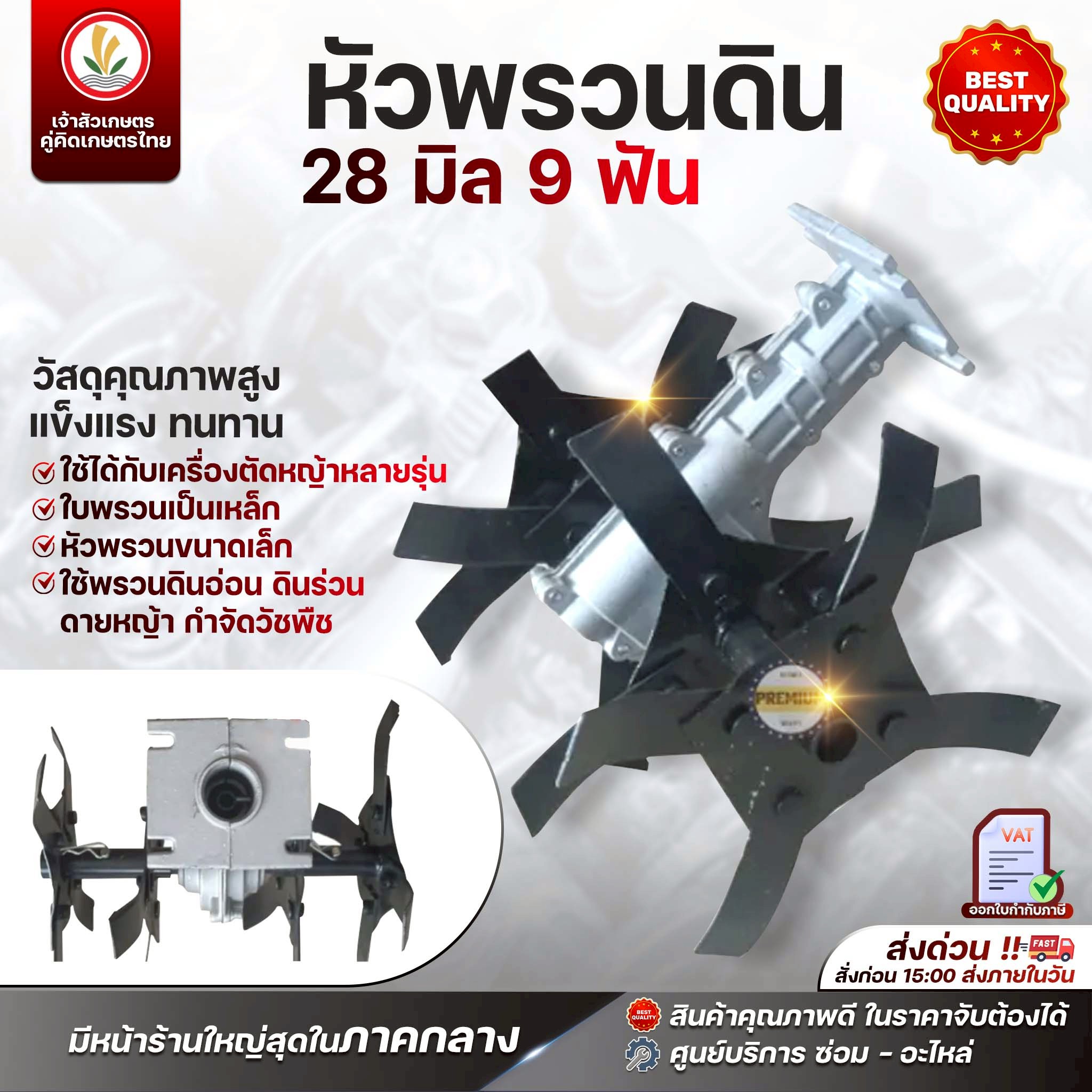 ใช้ถากหน้าดิน หัวพรวนใช้กับก้านตัดหญ้า 28 มิล 9 ฟัน