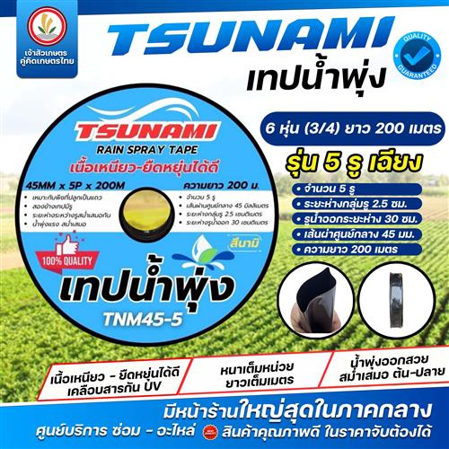 เทปน้ำพุ่ง แบรนด์ TSUNAMI สึนามิ (1 นิ้ว) 5 รูเฉียง, (6 หุน) 3 รูเฉียง 5 รูเฉียง (มีราคาต่อม้วนและยกกล่อง) ยาว 200 เมตร