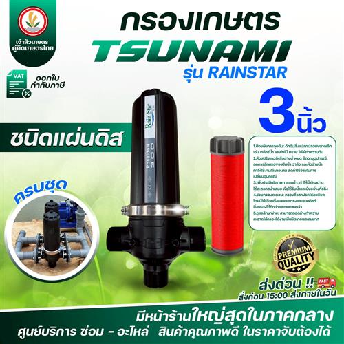 กรองเกษตร ขนาด 3 นิ้ว (เดินระบบน้ำเกษตร) แบรนด์ TSUNAMI รุ่น RAINSTAR กรองน้ำเกษตร (ชนิดแผ่นดิส) (ชนิดตะแกรง)