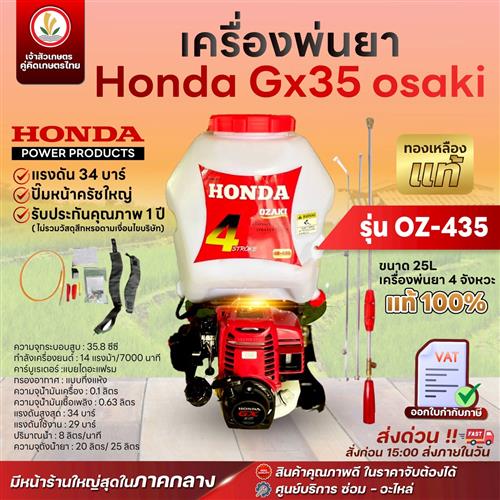 HONDA เครื่องพ่นยา สะพายหลัง 4จังหวะ GX35 OSAKI รุ่น OZ-435 ขนาด 25 ลิตร ทนทาน ประกัน 1 ปี