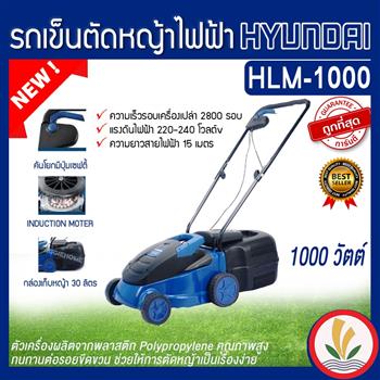 HYUNDAI รถเข็นตัดหญ้าไฟฟ้า รุ่น HLM-1000 1000W ปรับความสูงได้ 3 ระดับ มอเตอร์ Brushless สายไฟยาว 15 เมตร