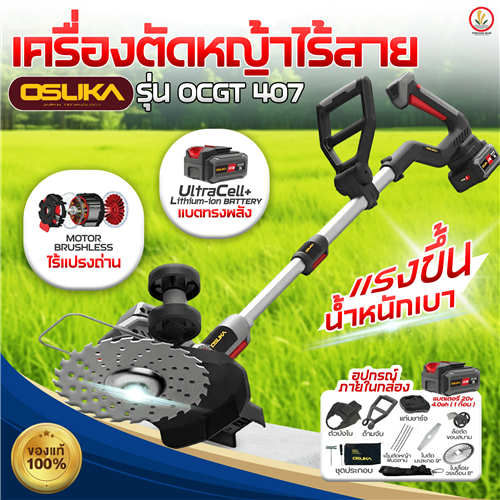 รุ่นใหม่! เครื่องตัดหญ้าไร้สาย OSUKA รุ่น OCGT407 ก้อนแบต 20v 4.0Ah พร้อมแท่นชาร์ต มอเตอร์ทน เครื่องตัดหญ้าแบตเตอร์รี่