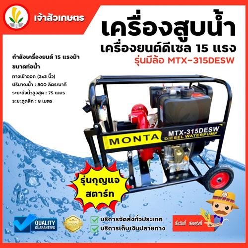 MONTA เครื่องสูบน้ำดีเซล รุ่น MTX-315DESW กำลัง 15แรง กุญแจสตาร์ท ท่อ3 นิ้ว เครื่องสูบน้ำดีเซล 4 จังหวะ ดูดลึก8เมตร