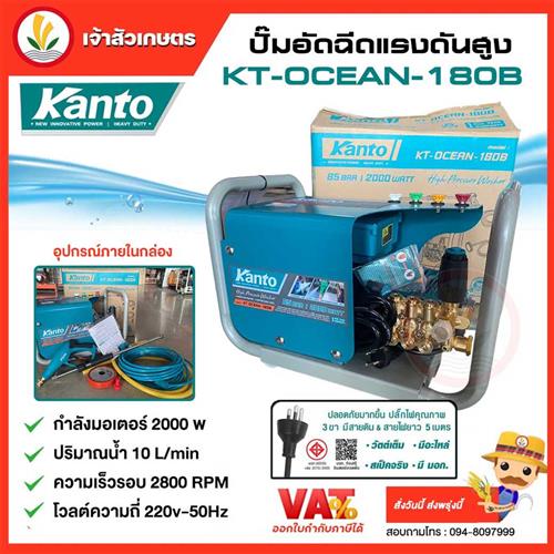 เครื่องฉีดน้ำแรงดันสูง KANTO รุ่น KT-OCEAN-180B 2000W ขวดลวดทองแดงแท้ เครื่องฉีดน้ำ ล้างแอร์ ล้างรถ มาตรฐาน มอก