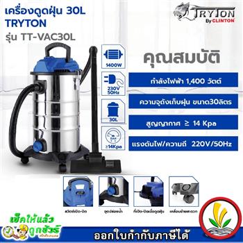 เครื่องดูดฝุ่น 50 ลิตร  รุ่น TT-VAC50L กำลังไฟฟ้า 1,400 วัตต์ เครื่องดูดฝุ่นและน้ำที่มาพร้อมระบบกรองคุณภาพ ที่มีประสิทธิภาพสูง ด้วยระบบกรองฝุ่นที่ช่วยเพิ่มพลังดูดมหาศาล ซึ่งแยกฝุ่นและอนุภาคเล็กๆ  ทำให้มีฝุ่นไปเกาะที่ตัวกรองฝุ่นน้อยลง