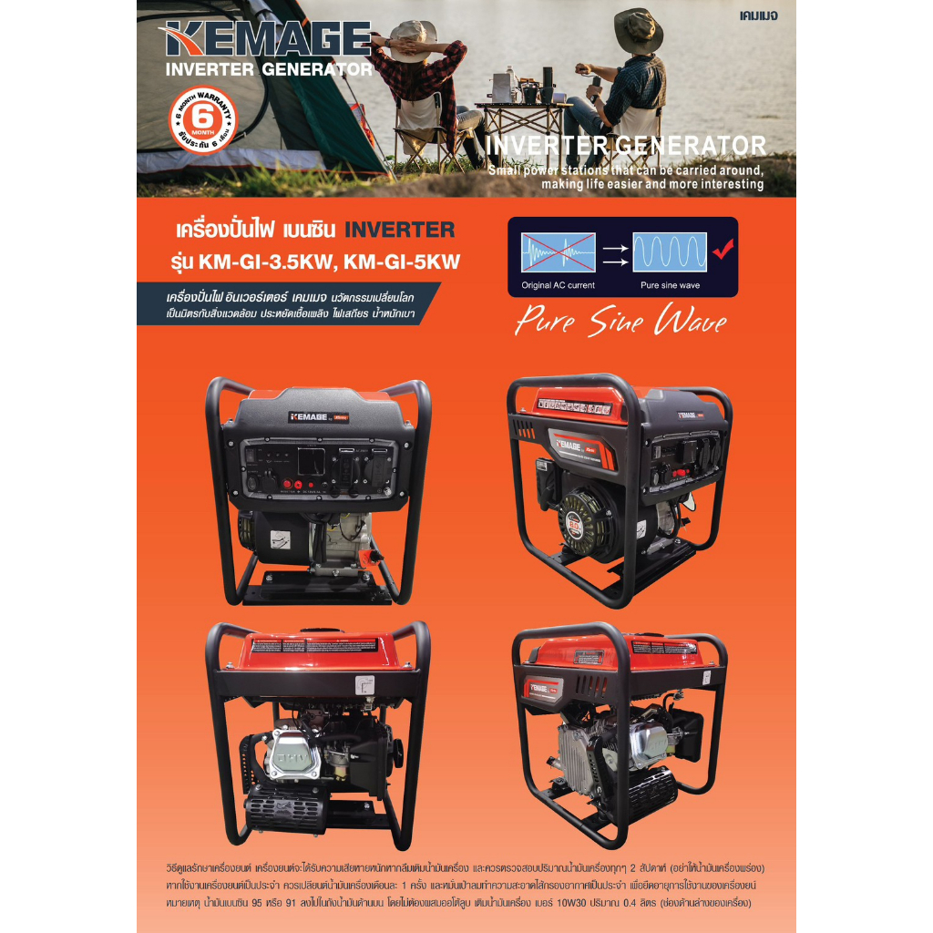 เครื่องปั่นไฟอินเวอเตอร์ KEMAGE by KANTO แบบเปิด รุ่น KM-GI-5KW เครื่องปั่นไฟแบบพกพา เครื่องปั่นไฟแบบแคมป์ปิ้ง