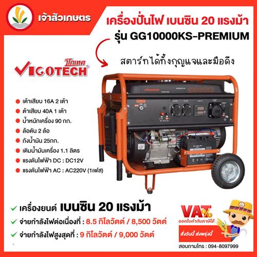 VIGOTECH เครื่องปั่นไฟเบนซิน 8500 วัตต์ รุ่น GG10000KS-PREMIUM เครื่องยนต์ 20HP สตาร์ททั้งกุญแจและมือดึง เครื่องปั่นไฟ
