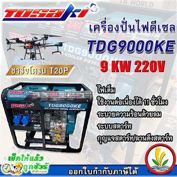 TOSAKI เครื่องปั่นไฟดีเซล 9 KW รุ่น TDG9000KE 9000วัตต์ 220V ลานดึงสตาร์ท/กุญแจสตาร์ท ชาร์จโดรน T20P ปั่นไฟ เครื่องกำเนิดไฟ ดีเซล