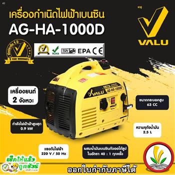 VALU เครื่องปั่นไฟเบนซิน 0.9 KW. รุ่น AG-HA-1000D มีใบรับประกันสินค้า ปั่นไฟ เครื่องปั่นไฟ