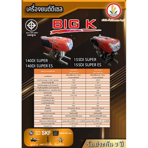 เครื่องยนต์ BK155DI Super ทนทาน พร้อมลุยงานสมบุกสมบัน สามารถนำไปใช้เป็นต้นกำลัง เพื่อทำงานได้หลากหลาย ไม่ว่าจะเป็นสูบน้ำ เตรียมดินเพื่อทำการเกษตร ขนส่ง ปั่นไฟ ไถนา ไถสวน เป็นต้น ✅ เครื่องยนต์ดีเซล BK155DI Super 15.5 แรงม้า ✅ เครื่องใหม่แกะกล่อง ✅ รับประกันคุณภาพ 3 ปี ✅ ใช้อะไรร่วมคูโบต้าได้ ทั้งหมด ✅ ผลิตในประเทศไทย [ย้ำไม่ใช่ของ❌️จีน🇨🇳] ✅ โฉมใหม่ทันสมัย หมุนเบา สั่งซื้อทักเพื่อรับส่วนลดพิเศษค่าส่ง ⭐ กรณีขอใบกำกับภาษีต้องแจ้งทางชองแชทเท่านั้นกับแอทมิน หากมีการขอย้อนหลัง ผู้ซื้อต้องออกค่าส่งใบกำกับภาษี 50 บาทตามหลัง ⭐