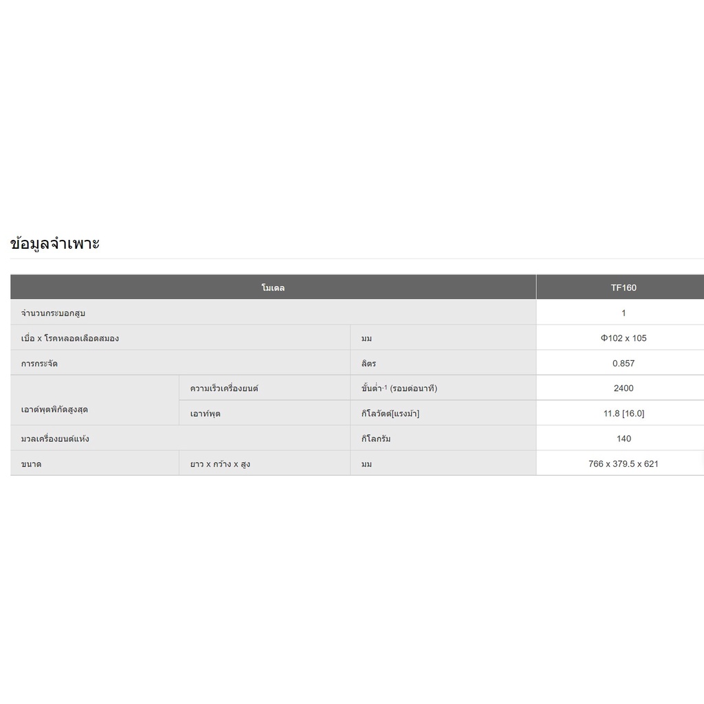 กำลังแรงม้าต่อเนื่อง 14.0 แรงม้า /2400รอบ/นาที (10.30kw./2400rpm)