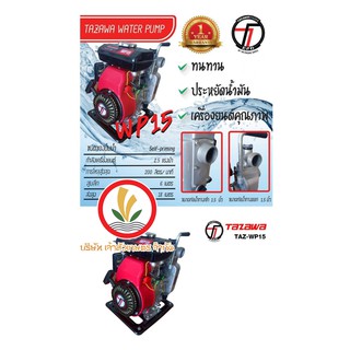 รายละเอียดสินค้า - รุ่น : TAZ-WP15 - แรงม้า : 2.5HP - ขนาดปั้ม : 1.5”x1.5 ” - ใบพัด : 1 - ชนิดเครื่องยนต์ : เบนซิน - ระยะดูด : 6 เมตร - ระยะส่ง : 18 เมตร - ปริมาณน้ำ : 200 ลิตร/นาที - ระบบสตาร์ท : ลานดึง - น้ำหนัก 11.5 Kg. - ขนาด 370x305x385 mm