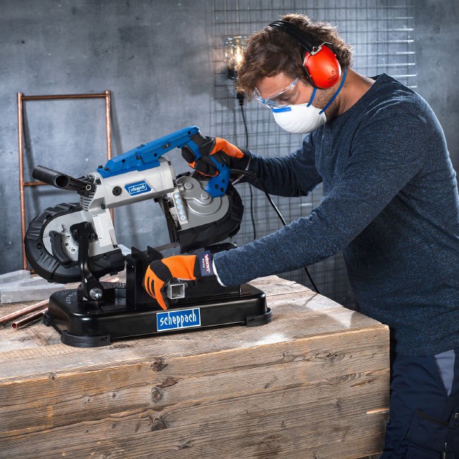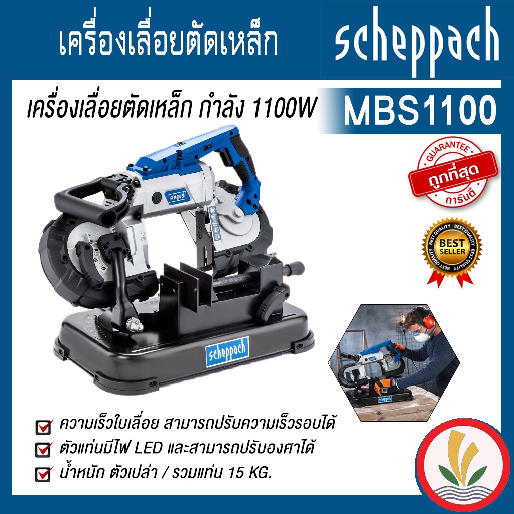 กำลังไฟ 1100 W สามารถตัดได้หนาสุด 127x127 mm. ตัวแท่นมีไฟ LED และสามารถปรับองศาได้ 0-45* ความเร็วใบเลื่อย สามารถปรับความเร็วรอบได้ 0.7-2.4 m/s ขนาดใบเลื่อย (เส้นรอบวง x ความหนา) 1140 x 12.7 mm. น้ำหนัก ตัวเปล่า / รวมแท่น 13 / 15 Kg.