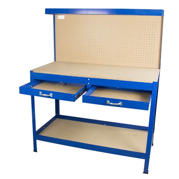 รายละเอียด - ออกแบบมาเพื่อช่วยให้งานของคุณเสร็จสิ้น รับน้ำหนักได้ถึง 100 Kg - วัสดุทำมาจากเหล็กและไม้ MDF อัดแน่น ใช้กับงานหนักได้ - มีลิ้นชัก 2 ช่อง เหมาะสำหรับเก็บอุปกรณ์ต่างๆ ที่จำเป็นสำหรับการทำงาน - ผนังด้านหลัง สามารถแขวนตะขอสำหรับแขวนเครื่องมือได้ - ขนาดกว้าง 121 cm x ยาว 61 cm x สูง 151 cm - น้ำหนัก 36 kg