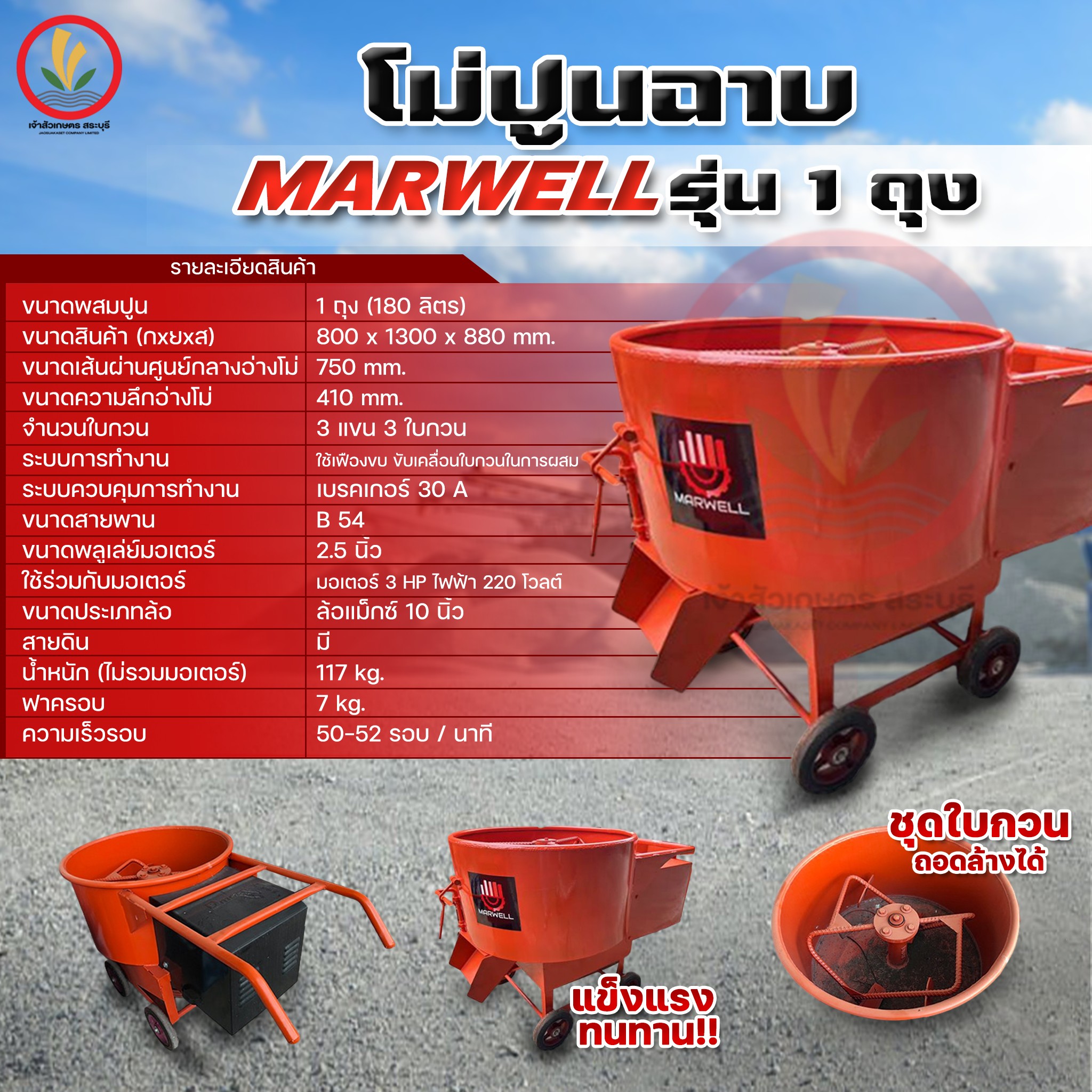 ⚙️ โม่ผสมปูน / โม่ผสมคอนกรีต / โม่ผสมปูนฉาบ / เครื่องผสมปูนฉาบ / โม่อเนกประสงค์ แบรนด์ MARWEL