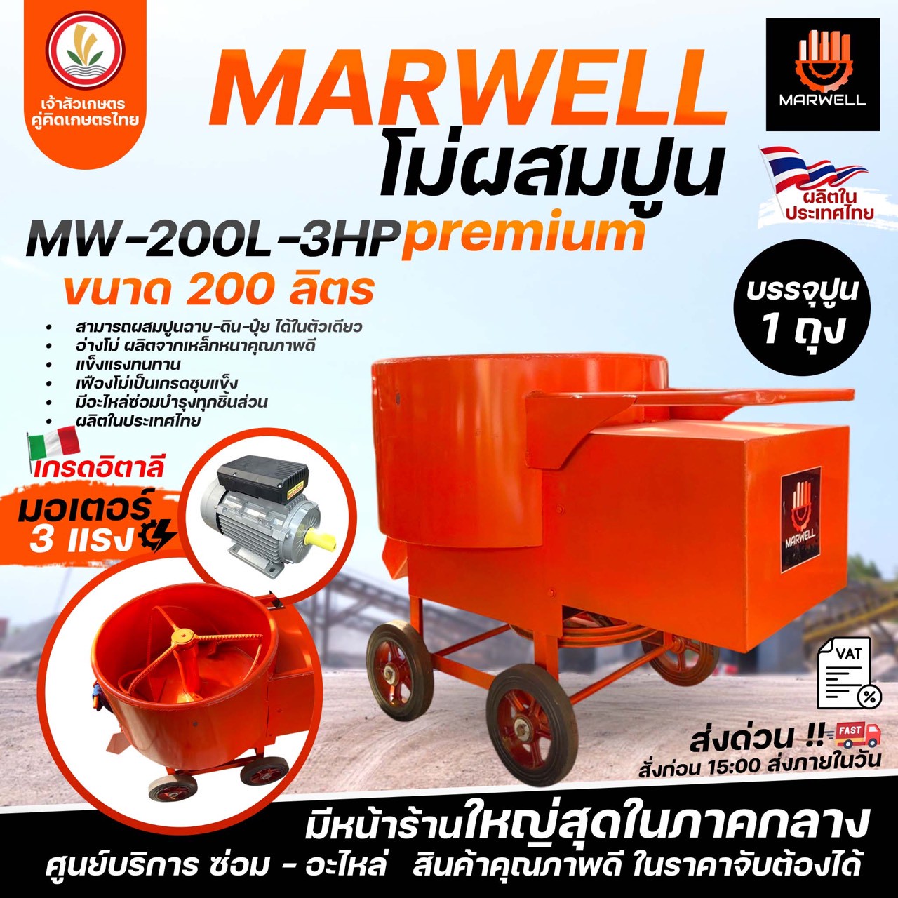 ❇️ รุ่น MW-200L ( ขนาด 200 ลิตร ) ( บรรจุปูน 1 ถุง )