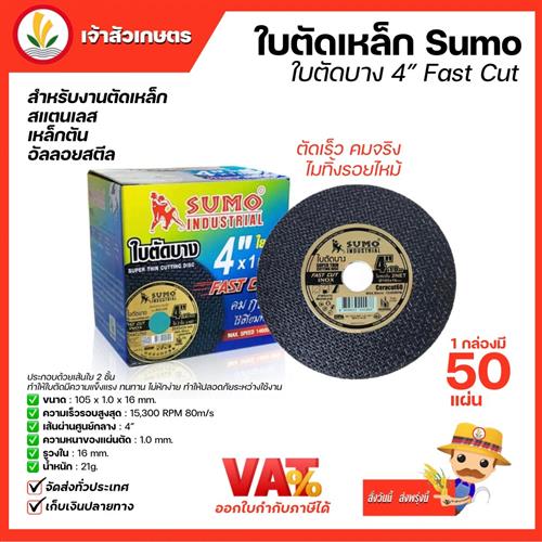 ใบตัดเหล็ก Sumo 4 นิ้ว ยกกล่อง 50 ใบ แผ่นตัด ตัดเหล็ก ตัดสแตนเลส ใบตัดบาง