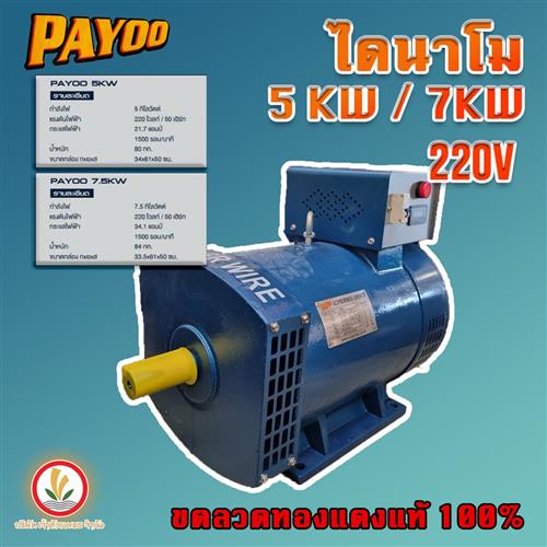 ไดนาโมเพลาลอย ไดนาโมปั่นไฟ 5 KW และ 7.5 Payoo ( พายุ ) ไฟออกเต็ม เบาเครื่อง