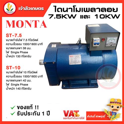 ไดนาโมเพลาลอย ไดนาโมปั่นไฟ ไดนาโม ยี่ห้อ Monta ขนาด 7.5KW และ 10KW แบบ 2 สาย ไฟ 220V