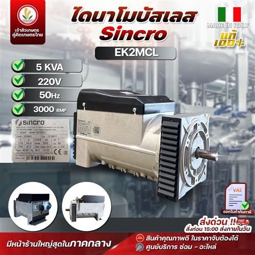 ไดนาโมระบบบัสเลส แบรนด์ SINCRO (อิตาลี) แท้ 100% (5KVA,6KVA,7KVA,8KVA,10KVA) ไฟ220V (10KVA, 11KVA) ไฟ380V ไดนาโมบลัสเลส