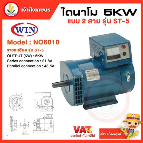 ไดนาโมเพลาลอย ไดนาโมปั่นไฟ ไดนาโม ยี่ห้อ WIN ขนาด 5 KW รุ่น ST-5 แบบ 2 สาย ไฟ 220V